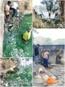 उसी क्रम मे बड़े तालाब जो 10-15 वर्षो से साफ सफाई न होने से गन्दा हो गया है. जिसकी साफ सफाई आज से प्रारम्भ किया गया और 2 ट्रैक्टर मलबा, पालीथीन, बोतल इत्यादि निकाला गया.