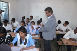 सारंगढ़-बिलाईगढ़, 13 दिसंबर 2025/कलेक्टर डॉ संजय कन्नौजे ने बिलाईगढ़ ब्लॉक के शासकीय हायर सेकेण्डरी स्कूल जोरा का औचक निरीक्षण किया, जहां बच्चों का यूनिट टेस्ट चल रहा था।