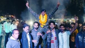 वहीँ नगरवासियो एवं युवा साथियो ने खुशी जाहिर करते हुए एक दूसरे को मिठाई खिलाये और नौजवान को अपने कंधे मे उठाकर नाचने लगे.पूरा नगर देश भक्ति गीत और जय जवान एवं भारत माता की जय के नारों के साथ गूंज उठा.